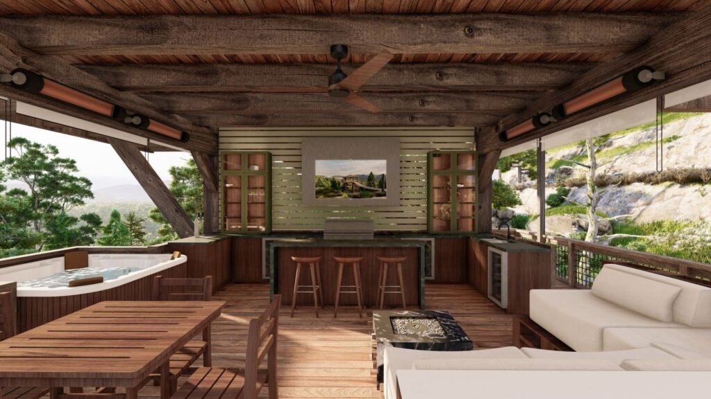 Experience unmatched comfort in our all-season sanctuary, designed for any weather. Adjustable climate-controlled rain and wind screens, in-ceiling heaters, and Big Ass Fans ensure the perfect atmosphere year-round.